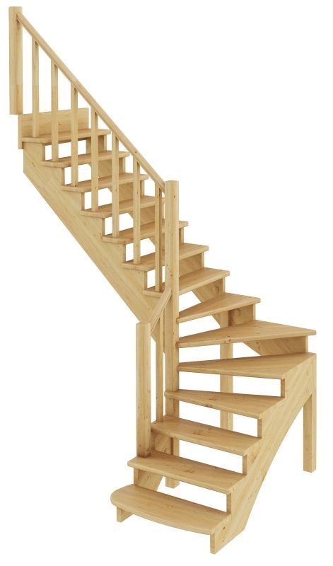 Удобная и современная модель с забежными ступенями будет отличным решением для помещений, где необходимо сэкономить свободное пространство. Сдержанный классический дизайн великолепно впишется в интерьер любого стиля и создаст уютную домашнюю атмосферу. Лестница имеет поворот на 90? и выпускается в 4 различных вариантах, что существенно упрощает ее подбор. Для изготовления лестницы под покраску используется сосна с небольшими изменениями цвета - синевой, такой допустимый порок древесины существенно не влияет на ее механические свойства и практически незаметен при покраске в тёмные цвета.
