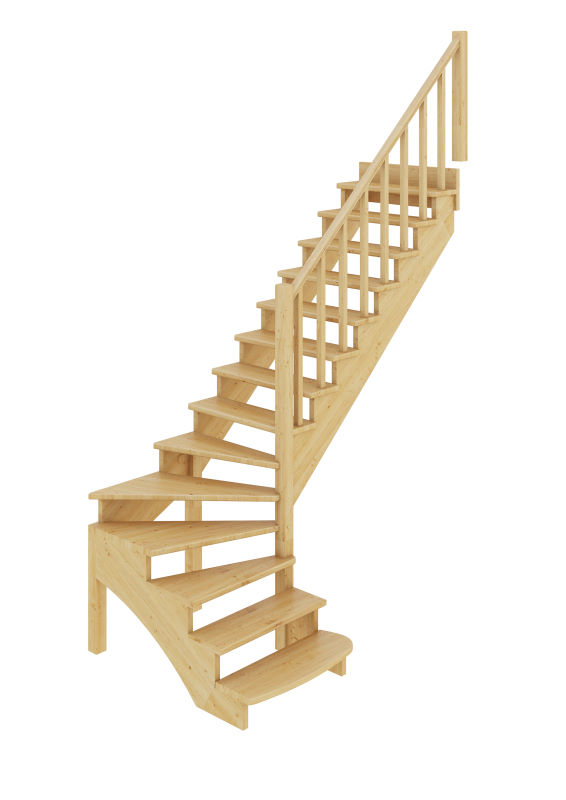 Удобная и современная модель с забежными ступенями будет отличным решением для помещений, где необходимо сэкономить свободное пространство. Сдержанный классический дизайн великолепно впишется в интерьер любого стиля и создаст уютную домашнюю атмосферу. Лестница имеет поворот на 90? и выпускается в 8 различных вариантах, что существенно упрощает ее подбор.