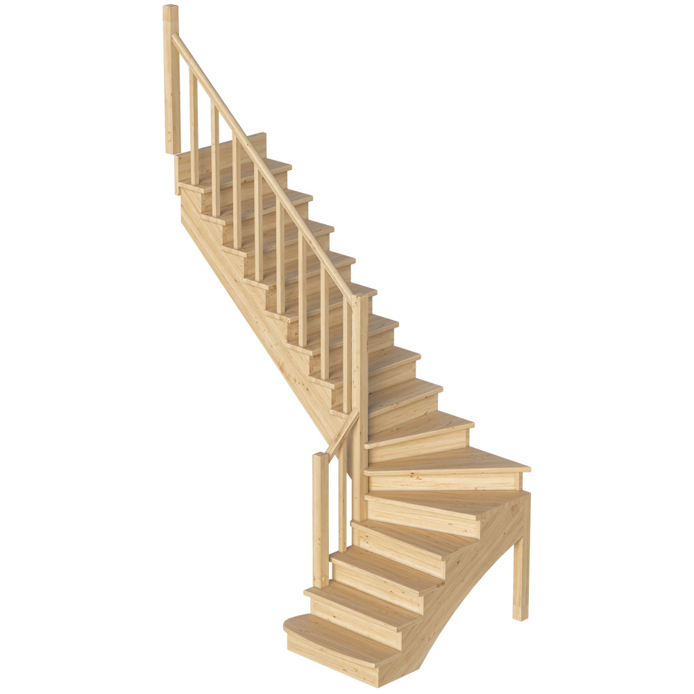 Удобная и современная модель с забежными ступенями будет отличным решением для помещений, где необходимо сэкономить свободное пространство. Сдержанный классический дизайн великолепно впишется в интерьер любого стиля и создаст уютную домашнюю атмосферу. Лестница имеет поворот на 90? и выпускается в 8 различных вариантах, что существенно упрощает ее подбор.