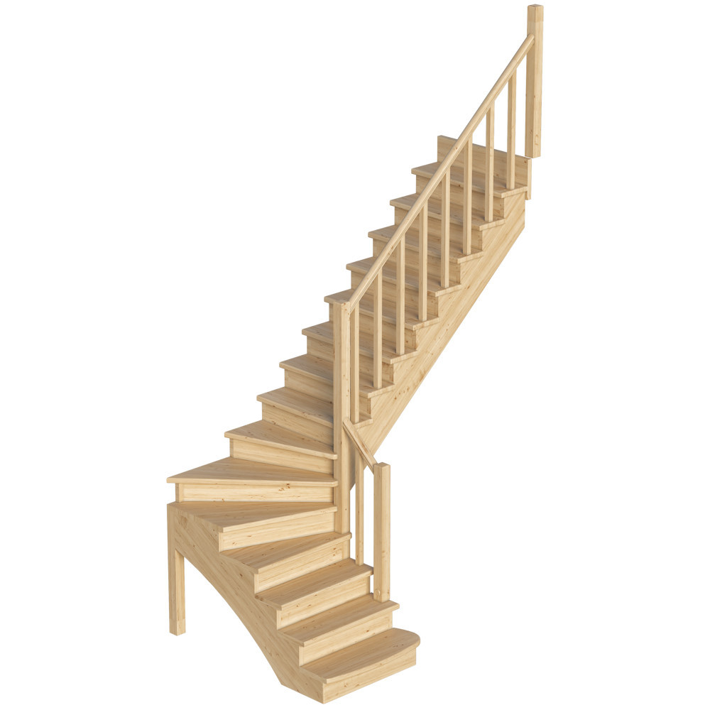 Удобная и современная модель с забежными ступенями будет отличным решением для помещений, где необходимо сэкономить свободное пространство. Сдержанный классический дизайн великолепно впишется в интерьер любого стиля и создаст уютную домашнюю атмосферу. Лестница имеет поворот на 90? и выпускается в 8 различных вариантах, что существенно упрощает ее подбор.