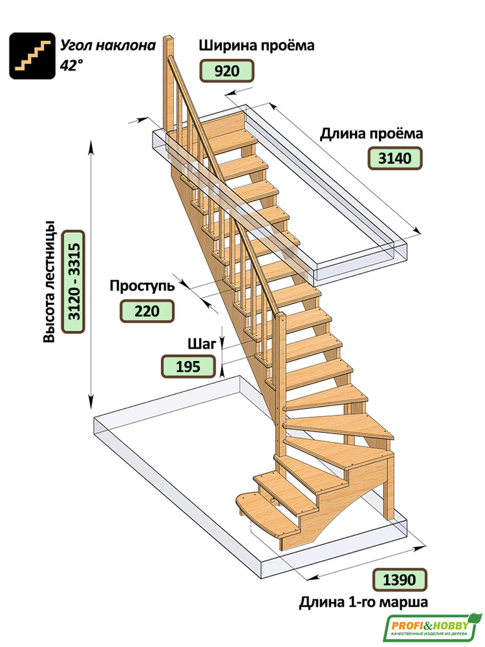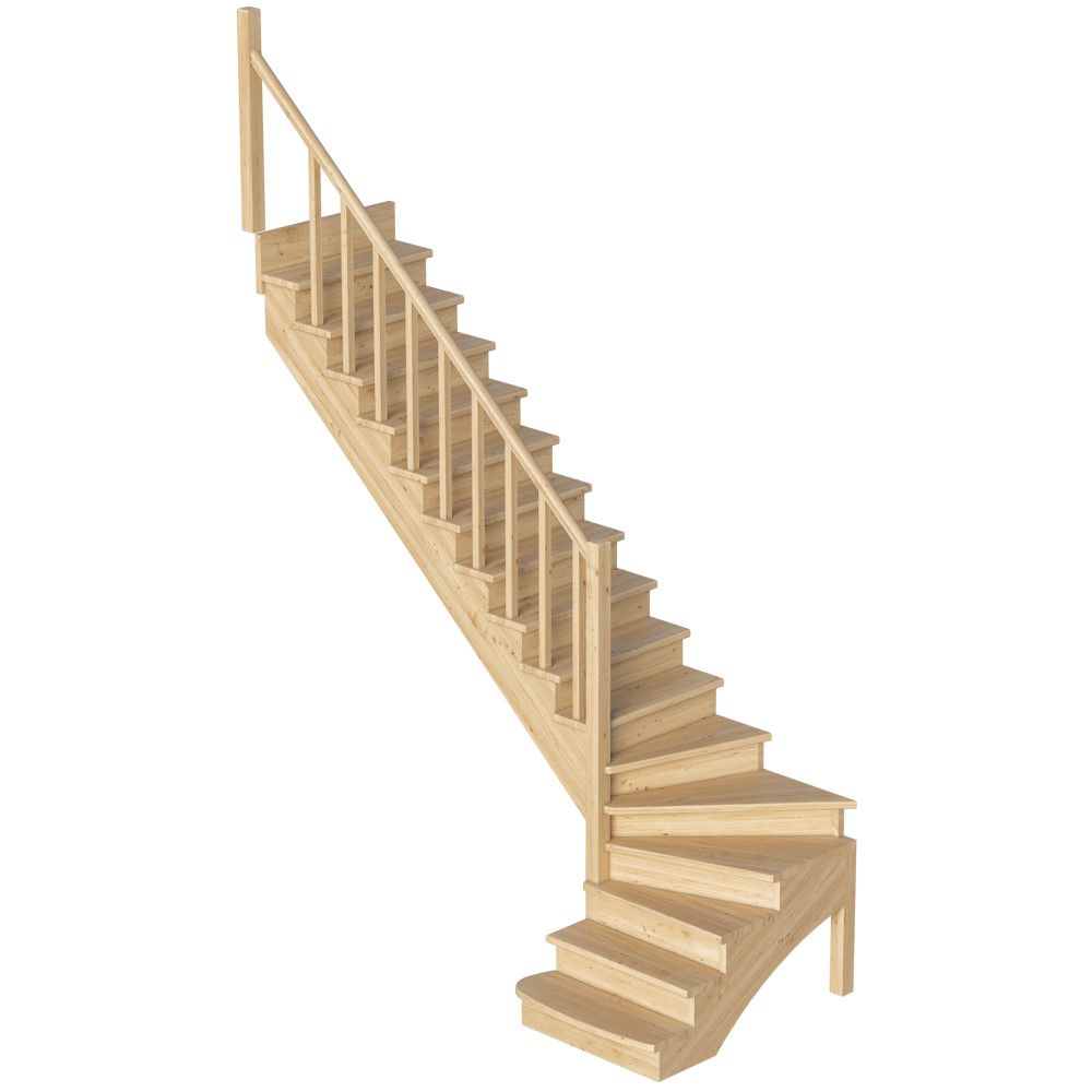 Удобная и современная модель с забежными ступенями будет отличным решением для помещений, где необходимо сэкономить свободное пространство. Сдержанный классический дизайн великолепно впишется в интерьер любого стиля и создаст уютную домашнюю атмосферу. Лестница имеет поворот на 90? и выпускается в 8 различных вариантах, что существенно упрощает ее подбор.