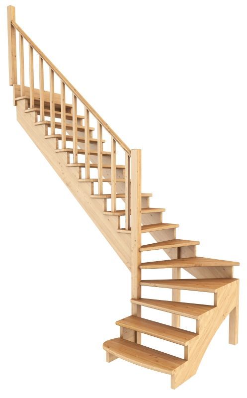 Удобная и современная модель с забежными ступенями будет отличным решением для помещений, где необходимо сэкономить свободное пространство. Сдержанный классический дизайн великолепно впишется в интерьер любого стиля и создаст уютную домашнюю атмосферу. Лестница имеет поворот на 90? и выпускается в 8 различных вариантах, что существенно упрощает ее подбор.