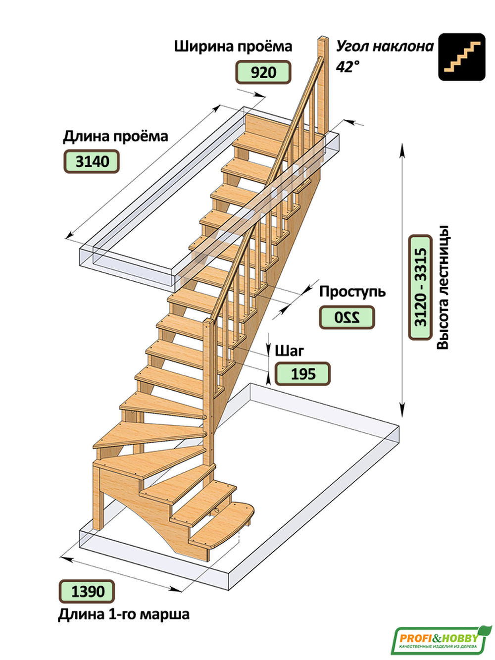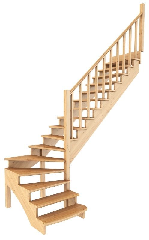 Удобная и современная модель с забежными ступенями будет отличным решением для помещений, где необходимо сэкономить свободное пространство. Сдержанный классический дизайн великолепно впишется в интерьер любого стиля и создаст уютную домашнюю атмосферу. Лестница имеет поворот на 90? и выпускается в 8 различных вариантах, что существенно упрощает ее подбор.