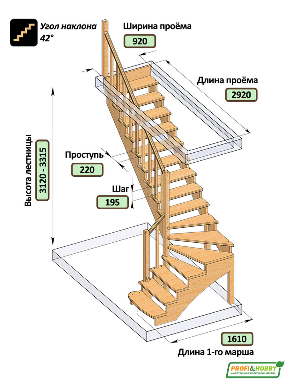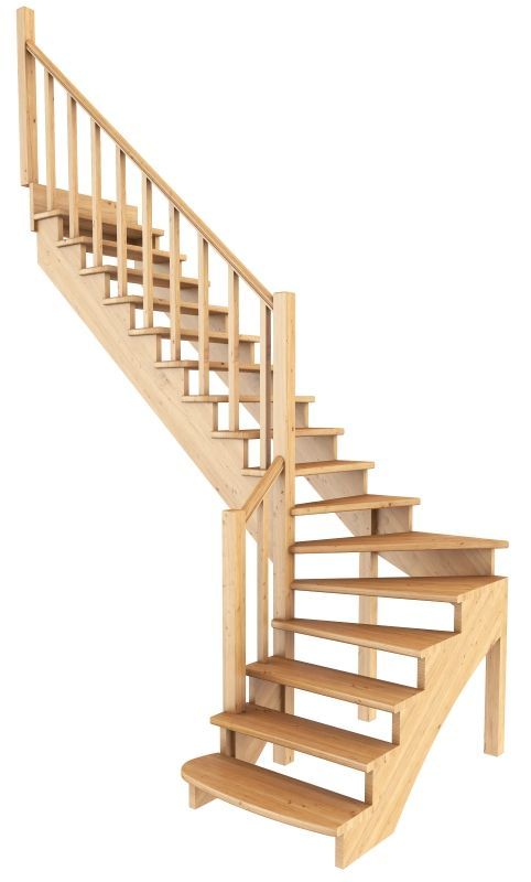 Удобная и современная модель с забежными ступенями будет отличным решением для помещений, где необходимо сэкономить свободное пространство. Сдержанный классический дизайн великолепно впишется в интерьер любого стиля и создаст уютную домашнюю атмосферу. Лестница имеет поворот на 90? и выпускается в 8 различных вариантах, что существенно упрощает ее подбор.