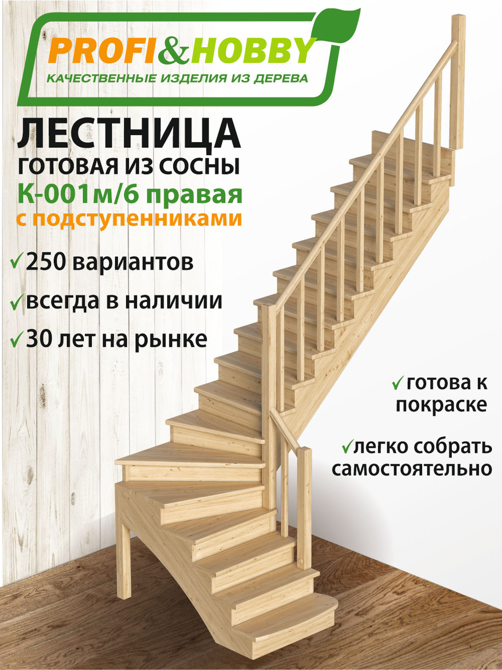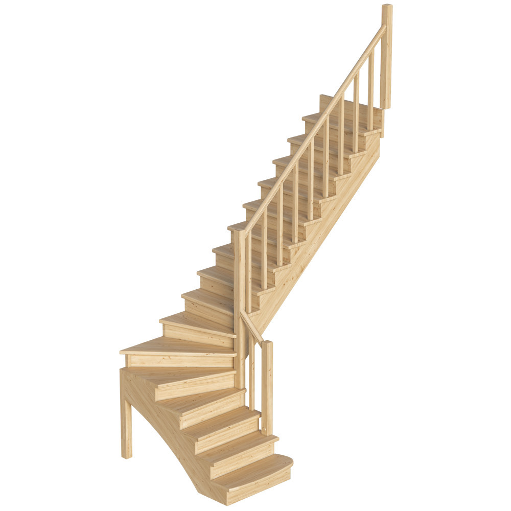 Удобная и современная модель с забежными ступенями будет отличным решением для помещений, где необходимо сэкономить свободное пространство. Сдержанный классический дизайн великолепно впишется в интерьер любого стиля и создаст уютную домашнюю атмосферу. Лестница имеет поворот на 90? и выпускается в 8 различных вариантах, что существенно упрощает ее подбор.