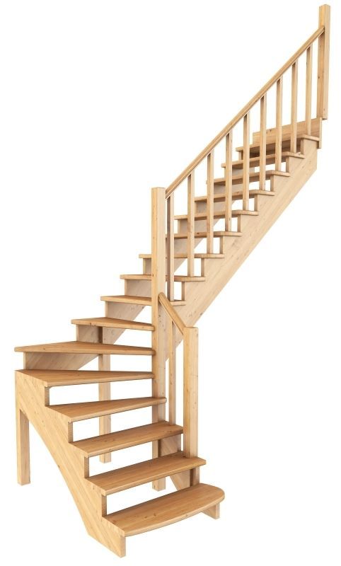 Удобная и современная модель с забежными ступенями будет отличным решением для помещений, где необходимо сэкономить свободное пространство. Сдержанный классический дизайн великолепно впишется в интерьер любого стиля и создаст уютную домашнюю атмосферу. Лестница имеет поворот на 90? и выпускается в 8 различных вариантах, что существенно упрощает ее подбор.