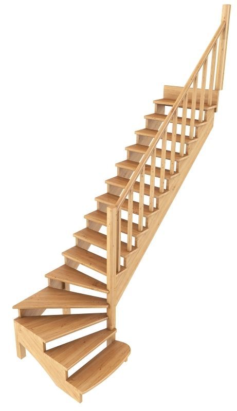 Удобная и современная модель с забежными ступенями будет отличным решением для помещений, где необходимо сэкономить свободное пространство. Сдержанный классический дизайн великолепно впишется в интерьер любого стиля и создаст уютную домашнюю атмосферу. Лестница имеет поворот на 90? и выпускается в 8 различных вариантах, что существенно упрощает ее подбор.