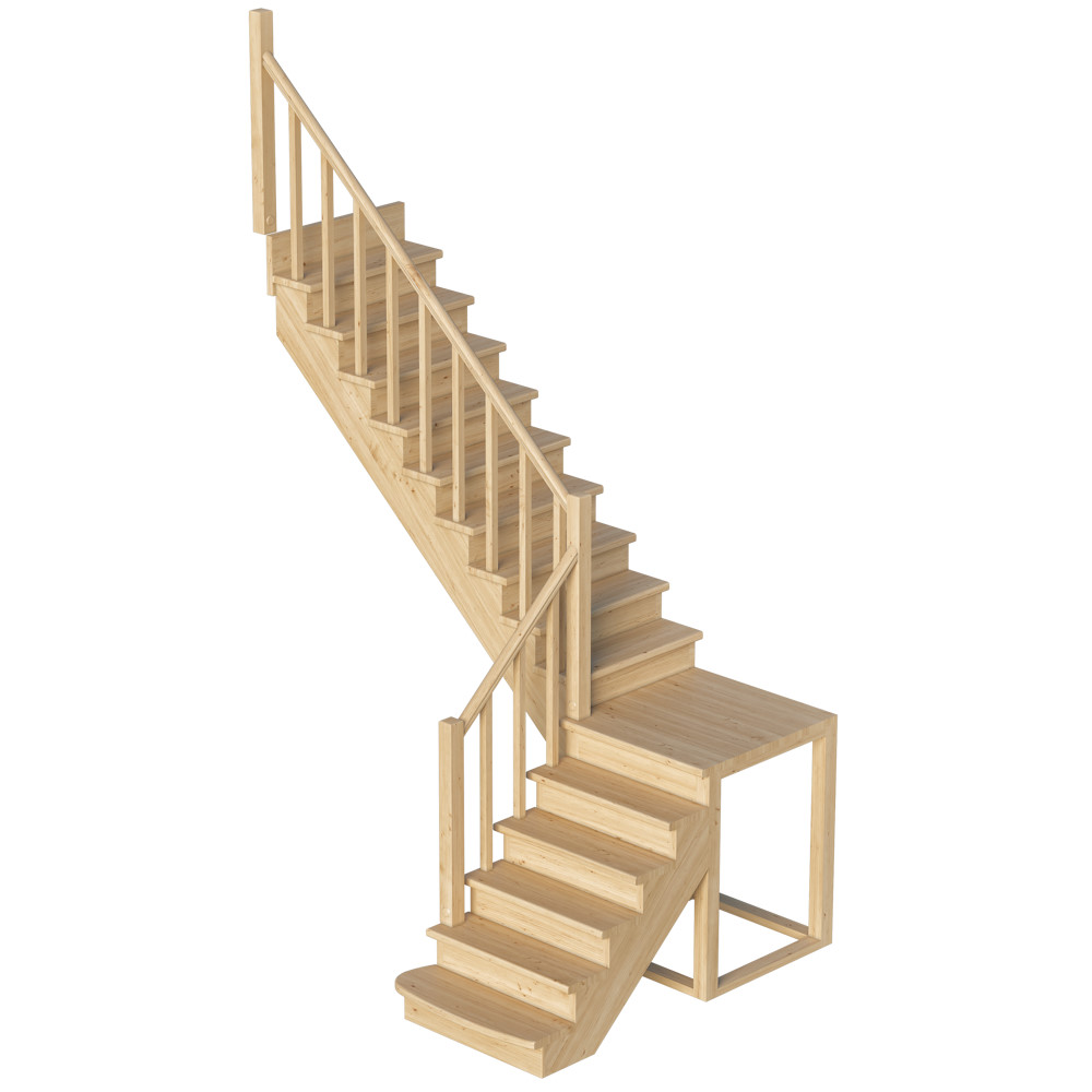 Функциональная модель сконструирована по классическому принципу марш-промежуточная площадка-марш, за счет чего отличается повышенной комфортностью и удобством эксплуатации. Традиционный дизайн эстетично впишется в интерьер дома и будет его достойным украшением. Лестница имеет поворот на 90? и выпускается в 4 различных вариантах, что существенно упрощает ее подбор.