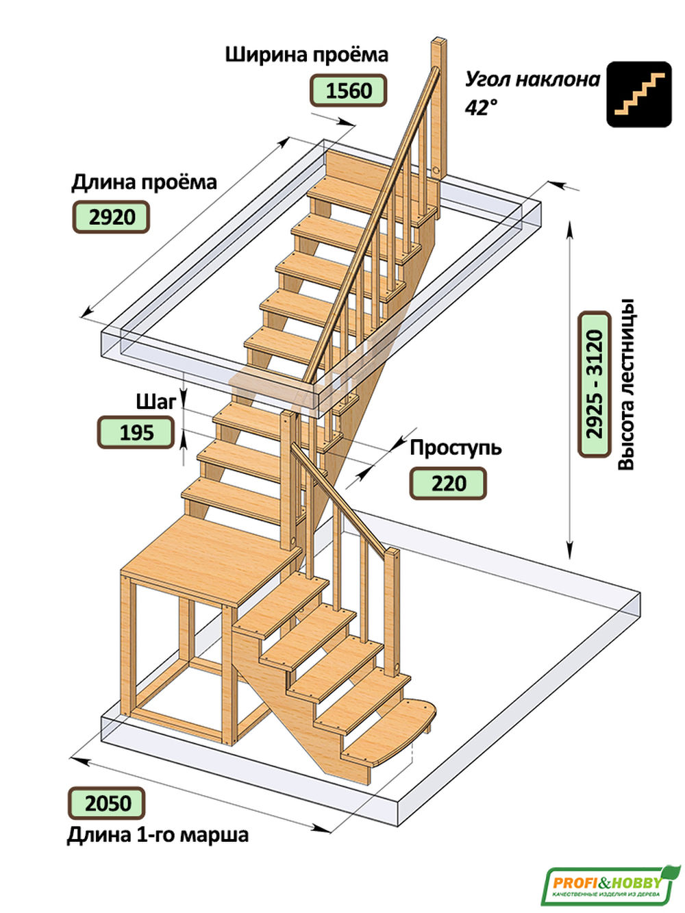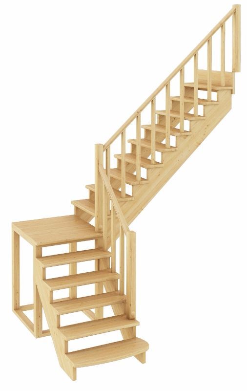 Функциональная модель сконструирована по классическому принципу марш-промежуточная площадка-марш, за счет чего отличается повышенной комфортностью и удобством эксплуатации. Традиционный дизайн эстетично впишется в интерьер дома и будет его достойным украшением. Лестница имеет поворот на 90? и выпускается в 4 различных вариантах, что существенно упрощает ее подбор.