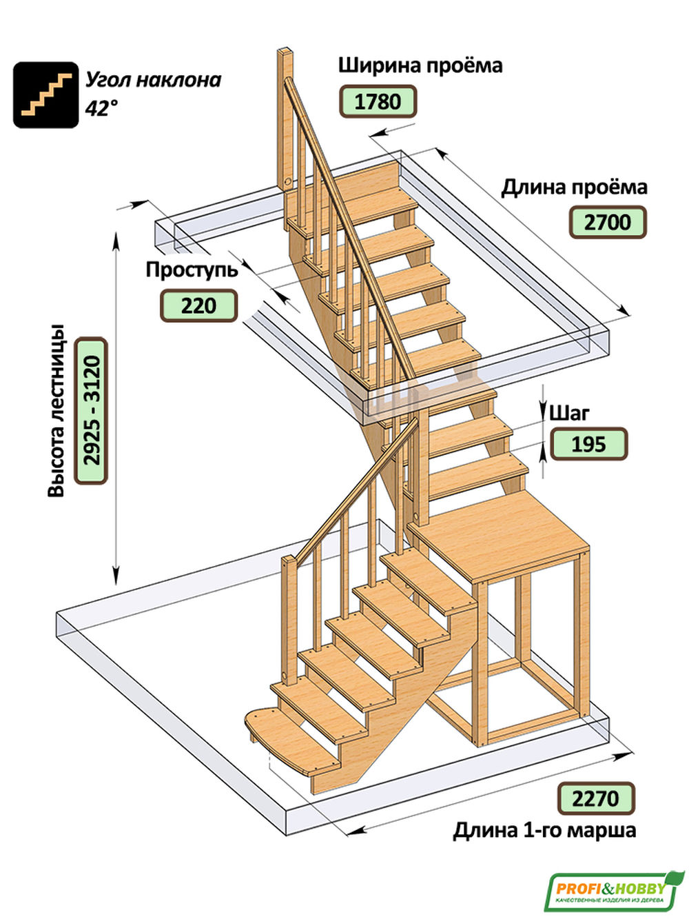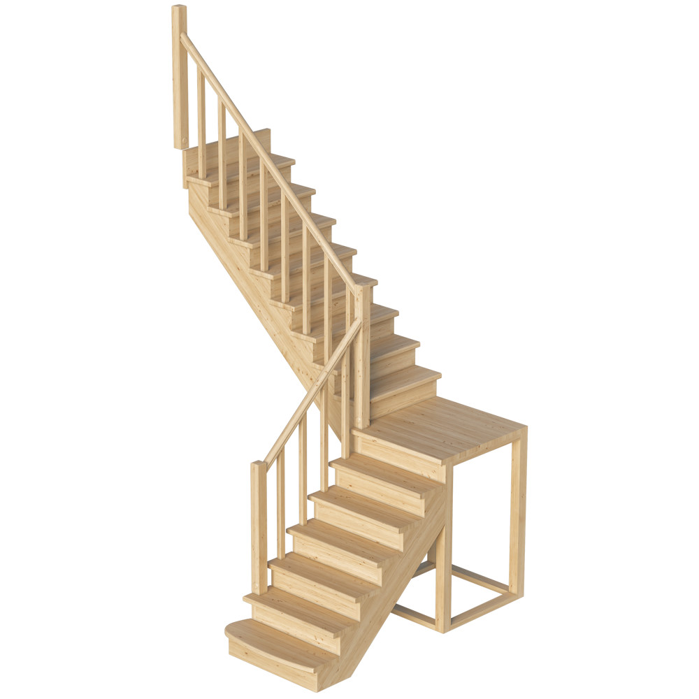 Функциональная модель сконструирована по классическому принципу марш-промежуточная площадка-марш, за счет чего отличается повышенной комфортностью и удобством эксплуатации. Традиционный дизайн эстетично впишется в интерьер дома и будет его достойным украшением. Лестница имеет поворот на 90? и выпускается в 4 различных вариантах, что существенно упрощает ее подбор.