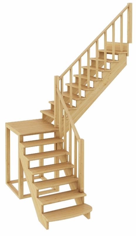 Функциональная модель сконструирована по классическому принципу марш-промежуточная площадка-марш, за счет чего отличается повышенной комфортностью и удобством эксплуатации. Традиционный дизайн эстетично впишется в интерьер дома и будет его достойным украшением. Лестница имеет поворот на 90? и выпускается в 4 различных вариантах, что существенно упрощает ее подбор.