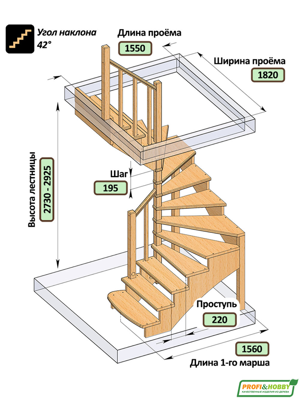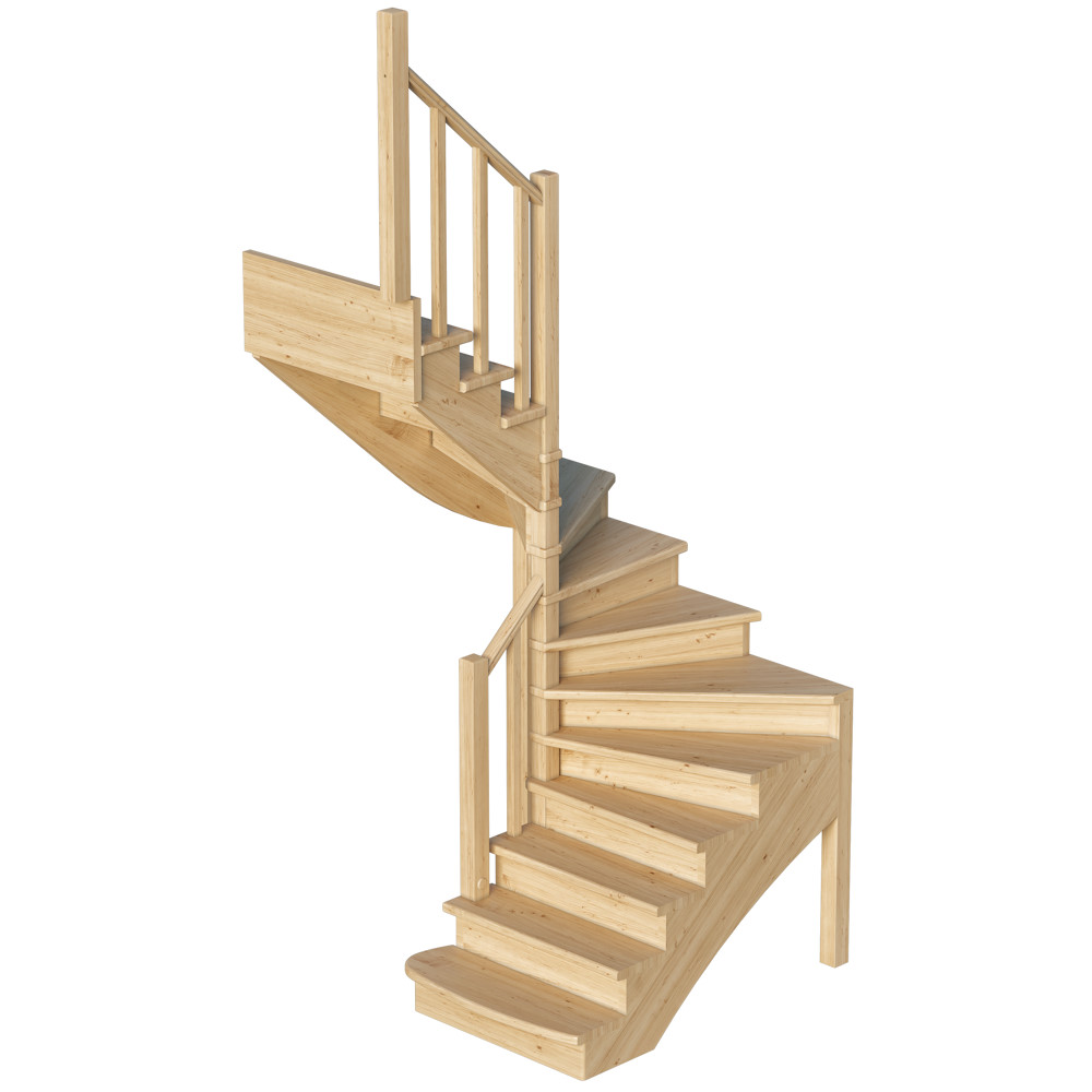 Компактная модель с удобными забежными ступенями послужит оригинальным дополнением любого загородного дома или коттеджа. Это лучшее решение для помещений с ограниченным свободным пространством. Лестница имеет поворот на 180? и выпускается в 4 различных вариантах, что существенно упрощает ее подбор.