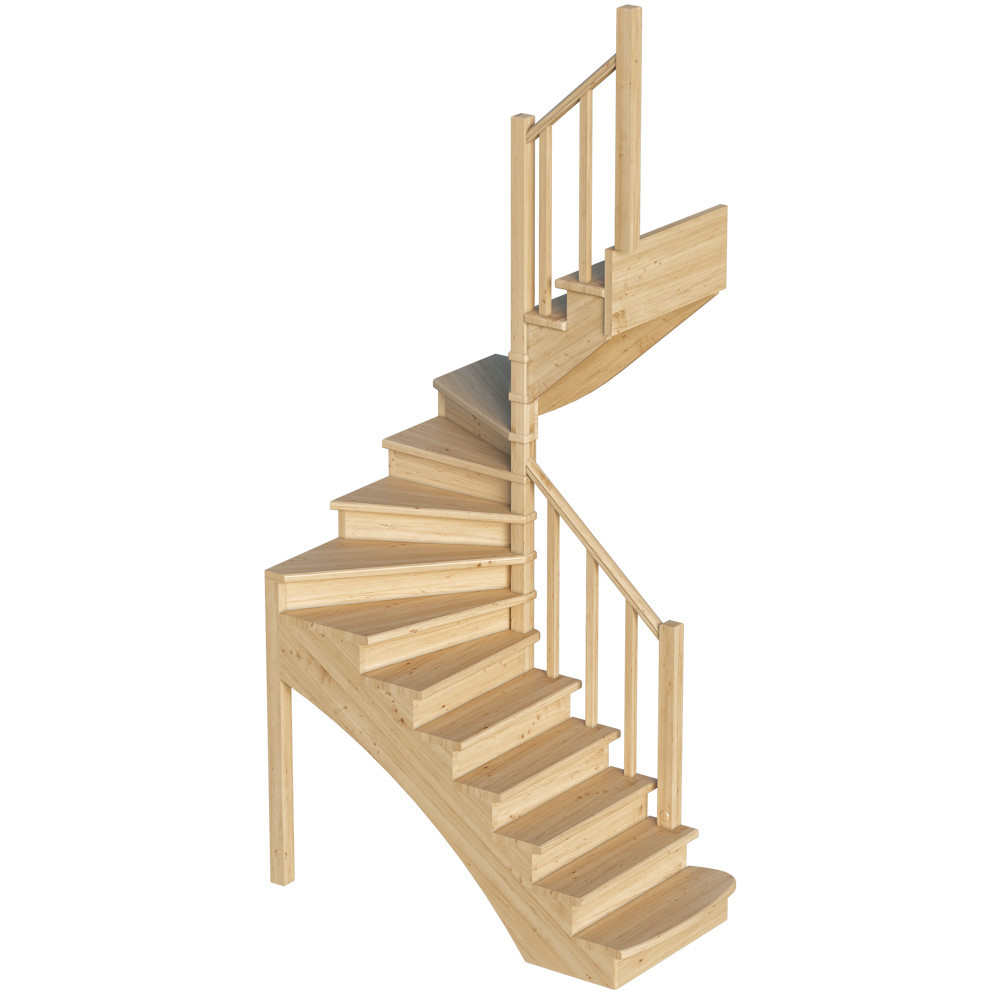 Компактная модель с удобными забежными ступенями послужит оригинальным дополнением любого загородного дома или коттеджа. Это лучшее решение для помещений с ограниченным свободным пространством. Лестница имеет поворот на 180? и выпускается в 4 различных вариантах, что существенно упрощает ее подбор.