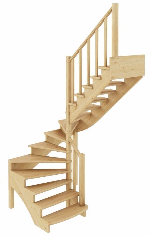 Компактная модель с удобными забежными ступенями послужит оригинальным дополнением любого загородного дома или коттеджа. Это лучшее решение для помещений с ограниченным свободным пространством. Лестница имеет поворот на 180? и выпускается в 4 различных вариантах, что существенно упрощает ее подбор.