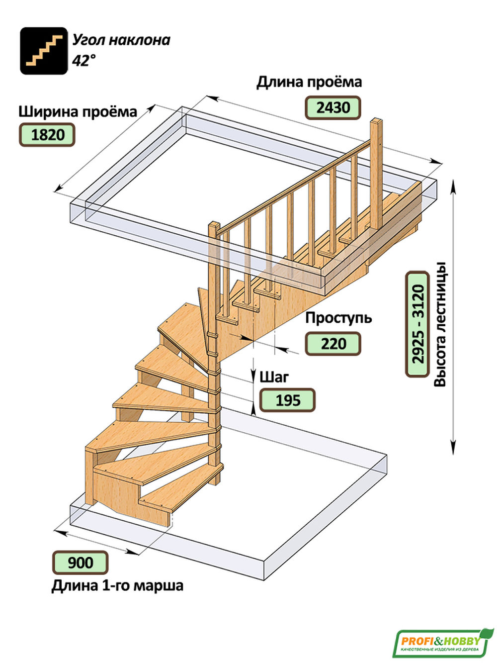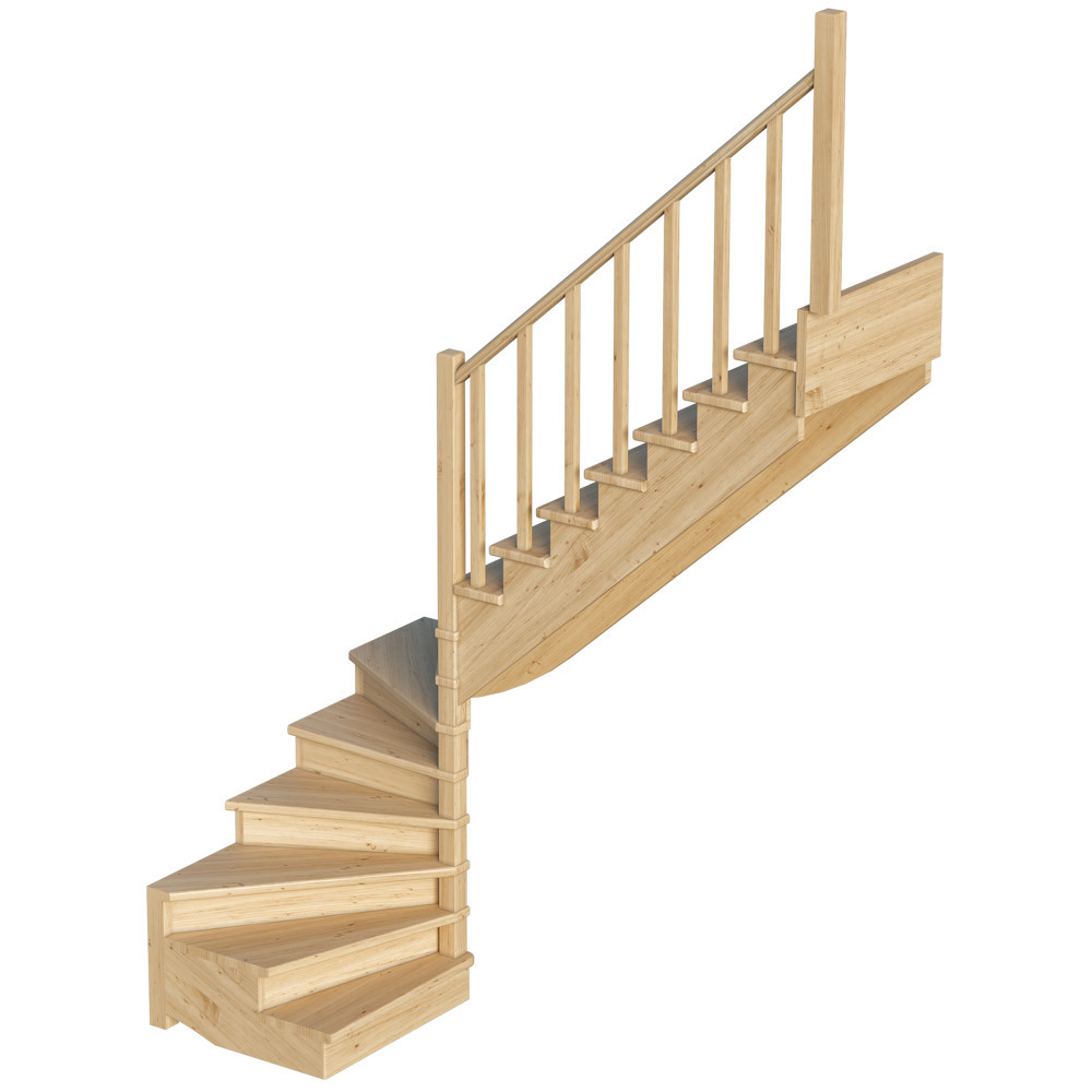 Компактная модель с удобными забежными ступенями послужит оригинальным дополнением любого загородного дома или коттеджа. Это лучшее решение для помещений с ограниченным свободным пространством. Лестница имеет поворот на 180? и выпускается в 4 различных вариантах, что существенно упрощает ее подбор.