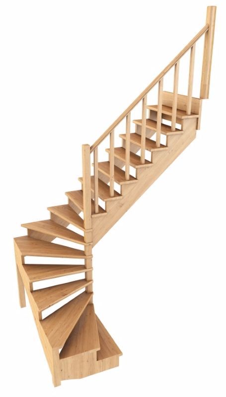 Компактная модель с удобными забежными ступенями послужит оригинальным дополнением любого загородного дома или коттеджа. Это лучшее решение для помещений с ограниченным свободным пространством. Лестница имеет поворот на 180? и выпускается в 4 различных вариантах, что существенно упрощает ее подбор.