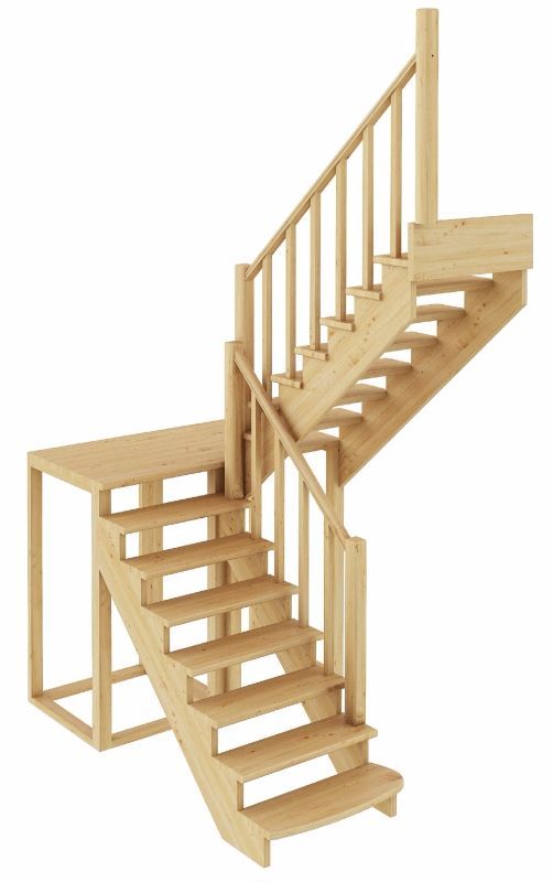 Удобная модель выполнена по традиционной схеме марш-промежуточная площадка-марш, за счет чего отличается повышенной комфортностью. Предложенный дизайн в сочетании с универсальной конструкцией придется по вкусу всем почитателям классики. Лестница имеет поворот на 180? и выпускается в 4 различных вариантах, что существенно упрощает ее подбор. В комплекте прилагается вся необходимая для сборки фурнитура.