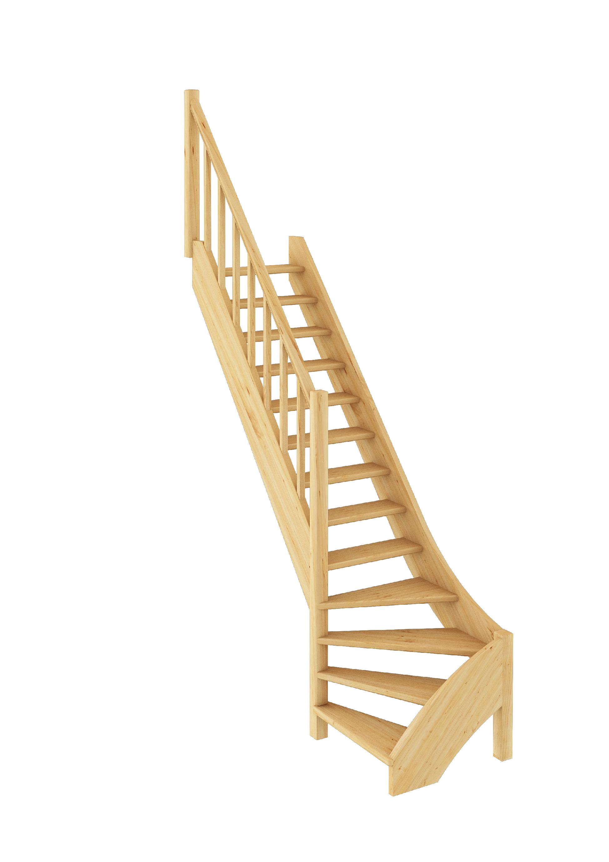 Удобная компактная модель оснащена забежными ступенями, за счет чего легко монтируется на ограниченном пространстве. Изготовлена на тетивах и имеет врезные ступени. Строго соответствует всем современным требованиям комфорта и безопасности. Лестница имеет поворот на 90 градусов. Для изготовления лестницы под покраску используется сосна с небольшими изменениями цвета - синевой, такой допустимый порок древесины существенно не влияет на ее механические свойства и практически незаметен при покраске в тёмные цвета.