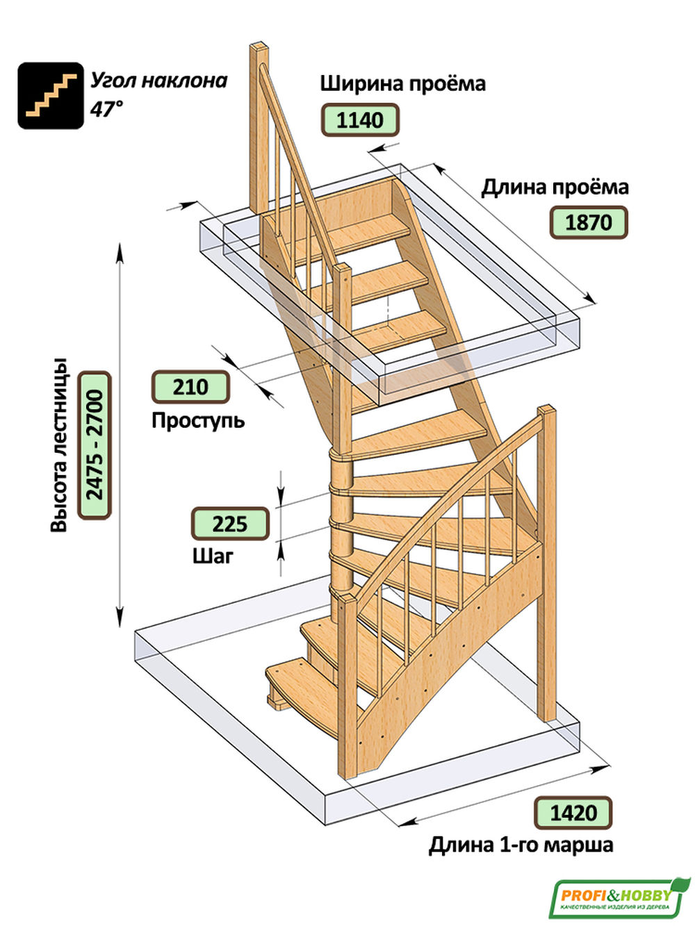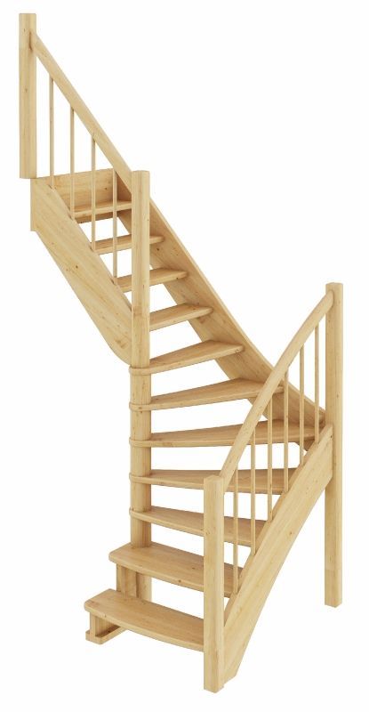 Модель разработана по аналогу лестницы ЛС-91м. Компактность конструкции не требует большого проема второго этажа. Несмотря на простой дизайн, отличается изысканной формой. Лестница имеет поворот на 90 градусов и оснащена дополнительным поручнем для максимального удобства при эксплуатации. Для изготовления лестницы под покраску используется сосна с небольшими изменениями цвета - синевой, такой допустимый порок древесины существенно не влияет на ее механические свойства и практически незаметен при покраске в тёмные цвета.