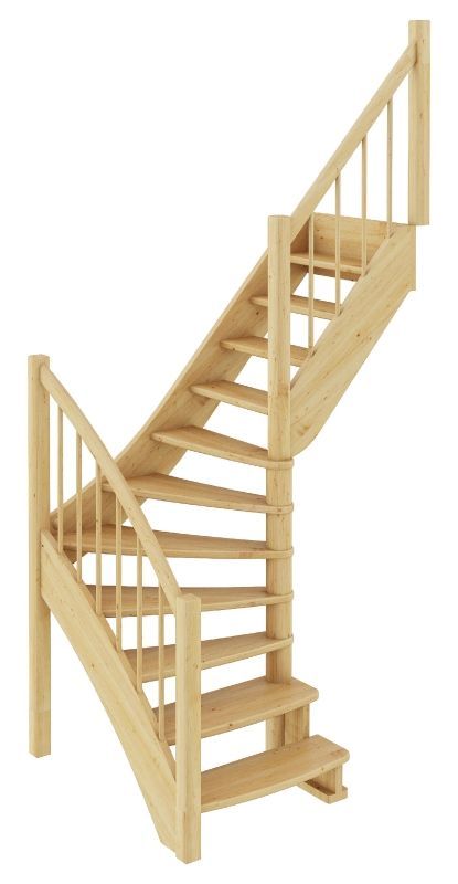 Модель разработана по аналогу лестницы ЛС-91м. Компактность конструкции не требует большого проема второго этажа. Несмотря на простой дизайн, отличается изысканной формой. Лестница имеет поворот на 90 градусов и оснащена дополнительным поручнем для максимального удобства при эксплуатации. Для изготовления лестницы под покраску используется сосна с небольшими изменениями цвета - синевой, такой допустимый порок древесины существенно не влияет на ее механические свойства и практически незаметен при покраске в тёмные цвета.