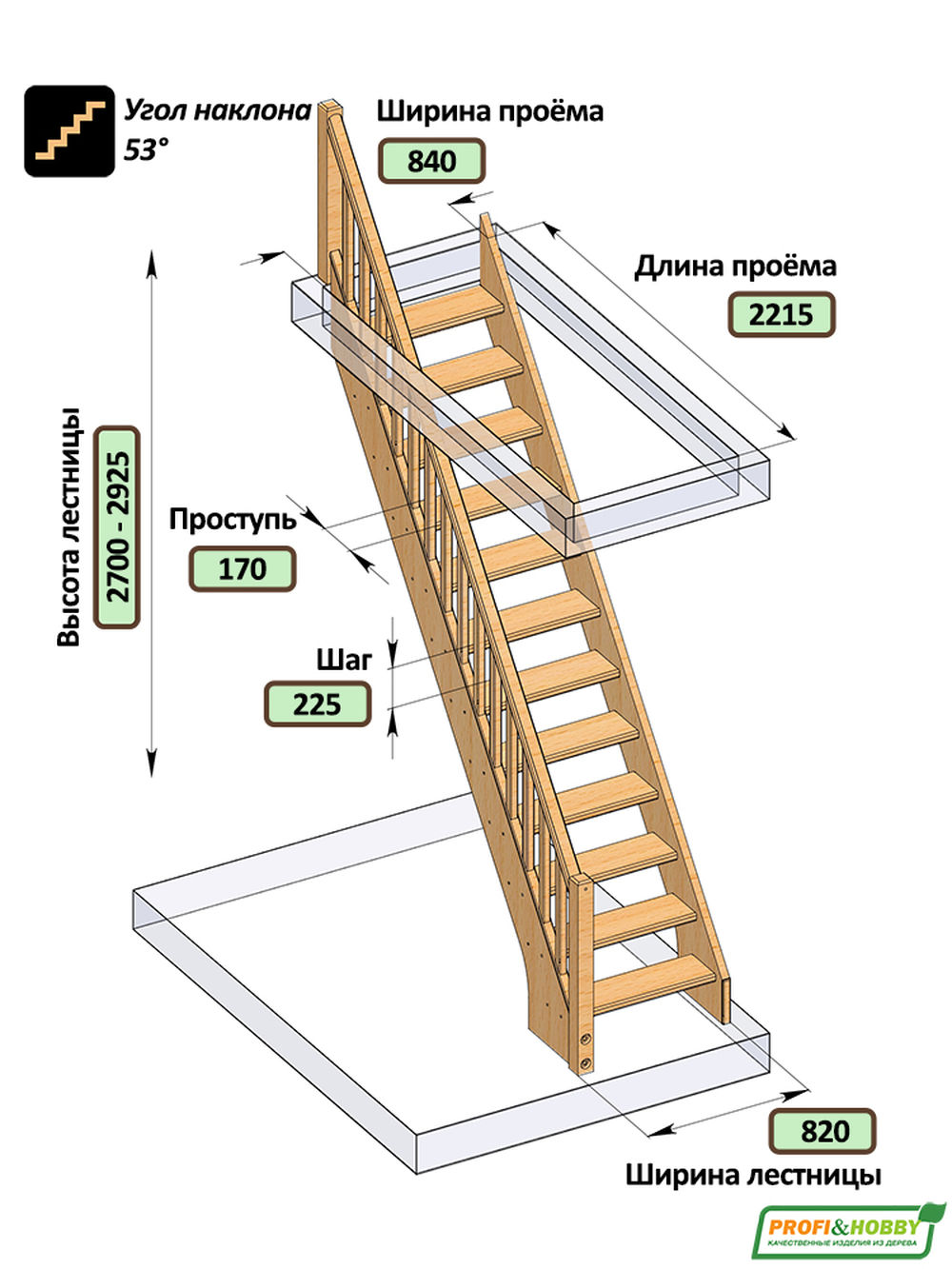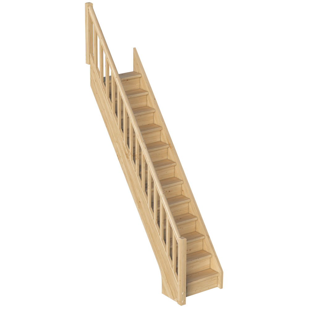Традиционная малогабаритная модель с прямым маршем отличается универсальностью конструкции, благодаря чему поручень может быть установлен как слева, так и справа. Эта легкая и компактная лестница требует совсем немного места в помещении, а удобное соотношение высоты шага и глубины ступеней делают ее комфортной при эксплуатации. Для изготовления лестницы под покраску используется сосна с небольшими изменениями цвета - синевой, такой допустимый порок древесины существенно не влияет на ее механические свойства и практически незаметен при покраске в тёмные цвета.