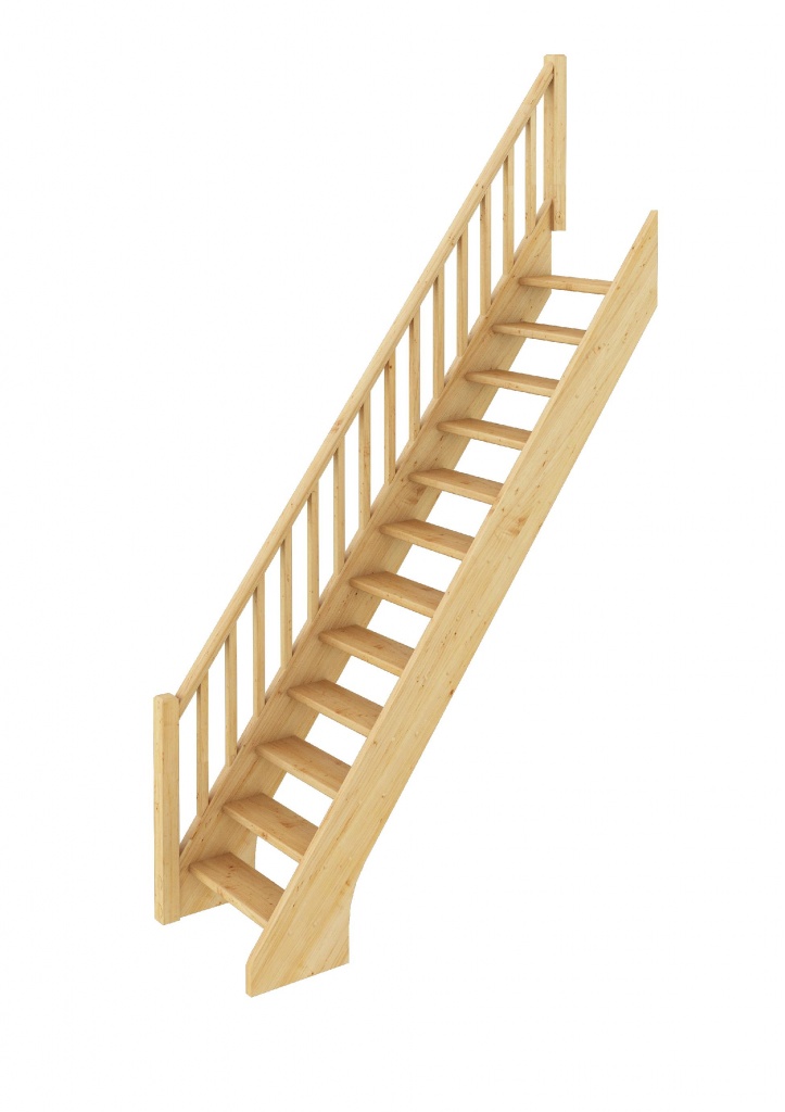 Традиционная малогабаритная модель с прямым маршем отличается универсальностью конструкции, благодаря чему поручень может быть установлен как слева, так и справа. Эта легкая и компактная лестница требует совсем немного места в помещении, а удобное соотношение высоты шага и глубины ступеней делают ее комфортной при эксплуатации.